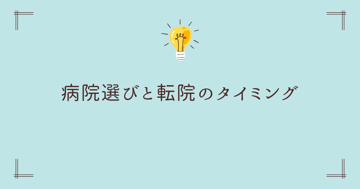 転院という選択肢は、私にとって「最悪のケース」「治療が失敗した証拠」のようなイメージがあって、できることなら絶対に避けたかった選択でした。
